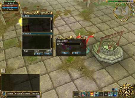 | 在仓库界面中点选“仓库解密”,输入正确的仓库密码,仓库密码解除,此后进行取物品和取钱操作将不需要再输入密码。 |