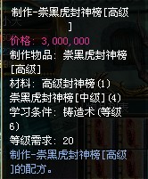 (3).学习这2个技能之后我们打开锻造技能并选中崇黑虎封神榜高级会看到制作这个物品需要