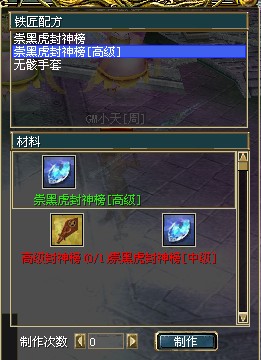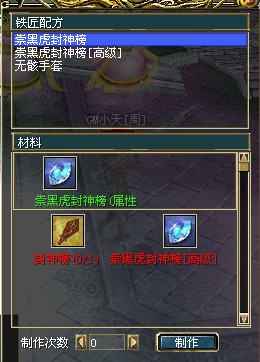 高级封神榜1个和崇黑虎封神榜中级4个.材料齐全点击制作会制作出高级封神榜1个