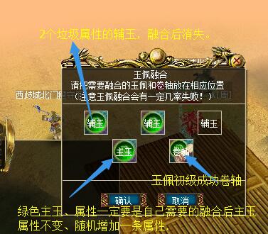 需要材料,1个主绿玉佩(属性要是自己需要的融合后主玉佩的属性不变)、2个绿色辅玉(融合后消失)、一个<玉佩[初级]成功卷轴>